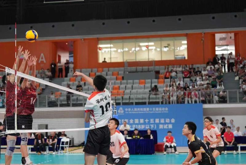 8月30日,第十五届全国运动会排球(女子18岁以下组)测试赛在深圳南山文体中心举行。本场比赛由深圳市体校选派的2支排球队伍共20名运动员参加,为现场300余名观众献上了一场精彩的排球盛宴。经过激烈角逐,最终,南山1队以3:0的比分战胜南山2队。